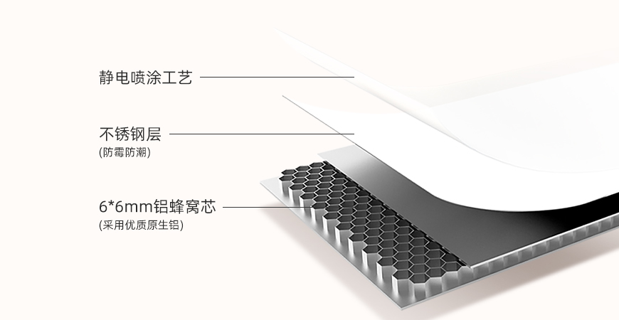6×6mm原生鋁蜂芯,輕盈強(qiáng)韌,不含重金屬和雜質(zhì)。